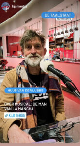 Op 9 december 2023 was ik in het DeLaMar theater op de koffie bij Huub van der Lubbe voor het radioprogramma “De Taalstaat”. Hij vertelde in de uitzending over zijn rol in de musical “De man van La Mancha”.